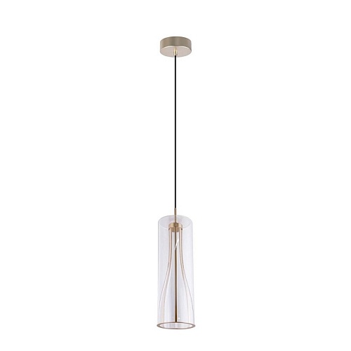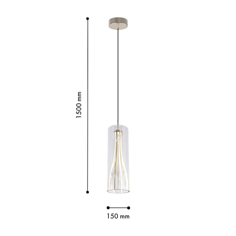 Каркас из металла цвета матовое золото, двойной плафон из стекла с обрамлением внутренней части ультратонким металлическим профилем, регулируемая высота, LED-модуль.