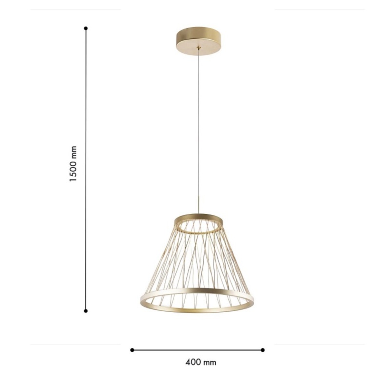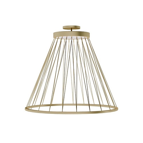 Каркас из металла цвета матовое золото, абажур из сплетённых нитей, плоский рассеиватель из акрила, регулируемая высота, LED-модуль.