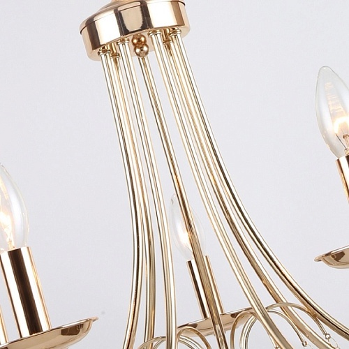 Металлический каркас золотого цвета, декор из тонких цепей, регулируемая высота, сменные лампы.