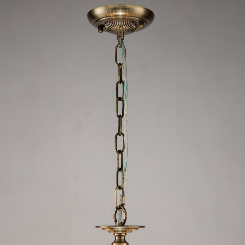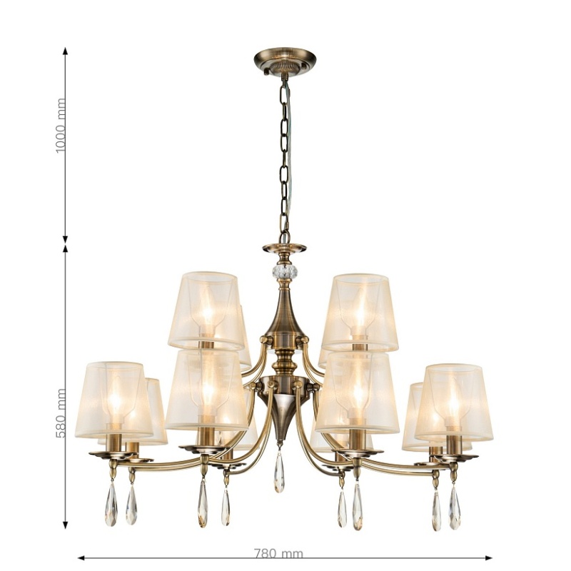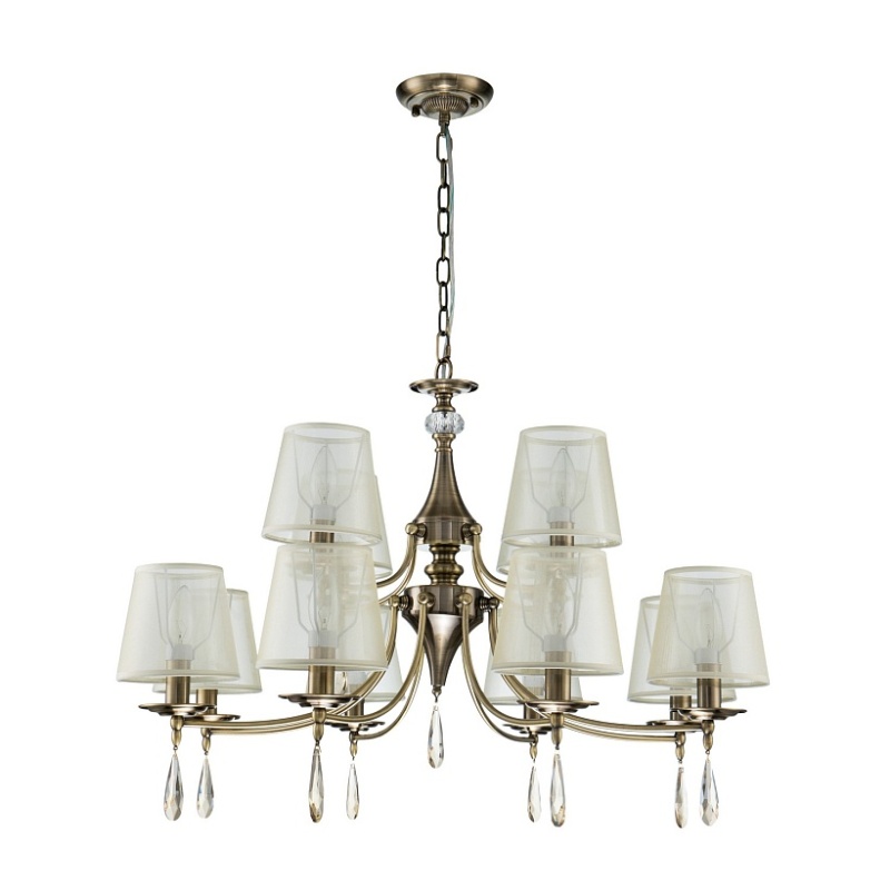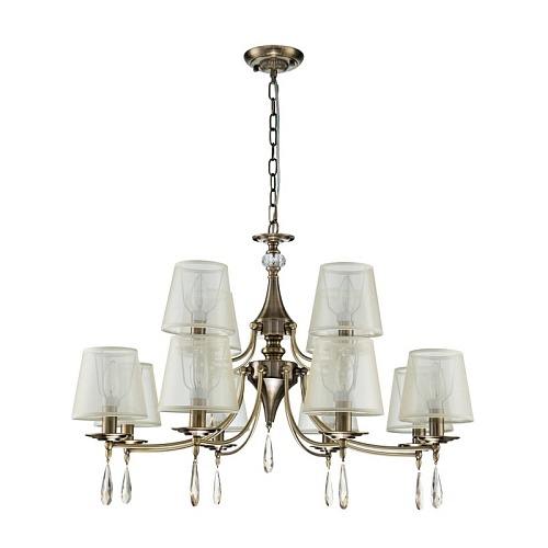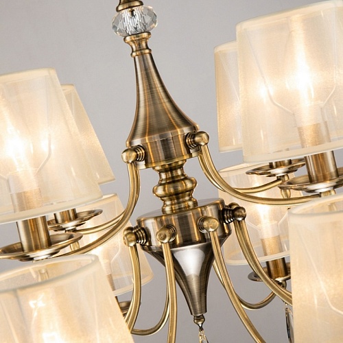 Каркас цвета античной бронзы, абажуры из органзы цвета шампанского, декоративные элементы из хрусталя янтарного цвета