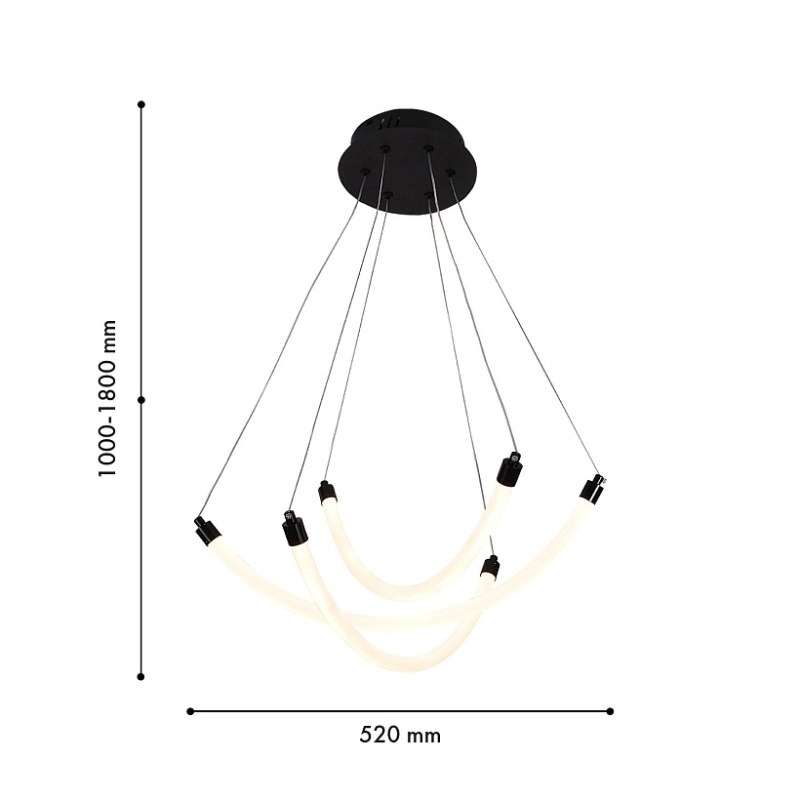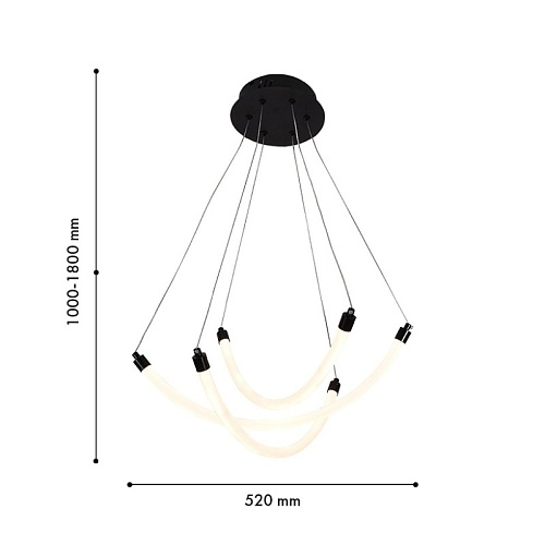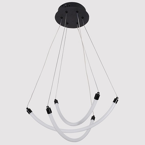 Металлический каркас черного цвета с четырьмя закругленными гибкими акриловыми трубками белого цвета, источником света служат встроенные ленты LED с круговым расположением светодиодов внутри, регулируемая высота, пульт управления регулирует мощность и температуру света.