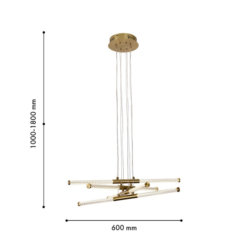 Металлический каркас в цвете латунь, световой элемент представлен композицией из акриловых трубок со спиральным узором, регулируемая высота.