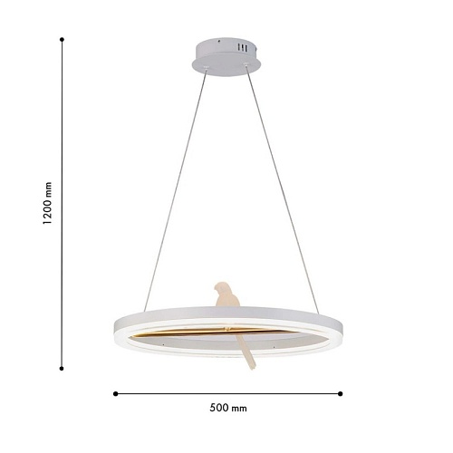 Каркас из металла белого цвета, декоративный элемент в виде попугайчика, рассеиватель из акрила, регулируемая высота, LED-модуль.