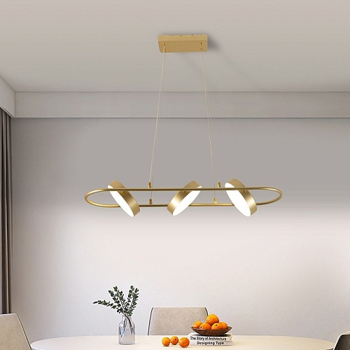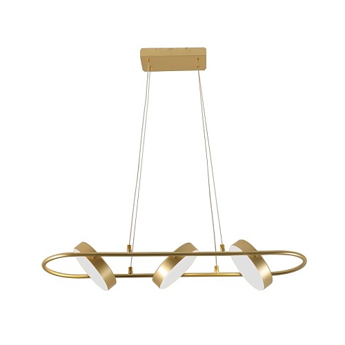 Каркас из металла золотого цвета, поворотные на 180° плафоны с рассеивателем из матового акрила, регулируемая мощность и цветовая температура, пульт дистанционного управления в комплекте, LED-модуль.