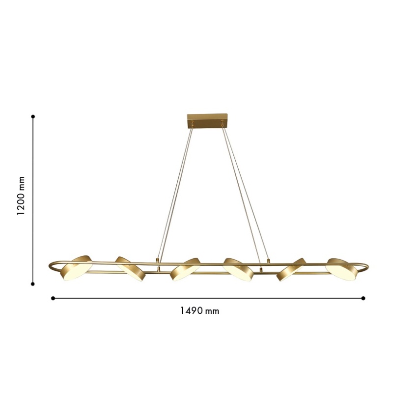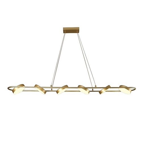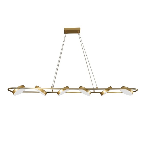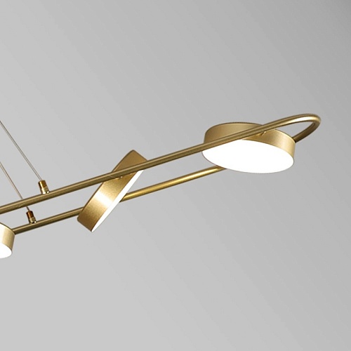 Каркас из металла золотого цвета, поворотные на 180° плафоны с рассеивателем из матового акрила, регулируемая мощность и цветовая температура, пульт дистанционного управления в комплекте, LED-модуль.