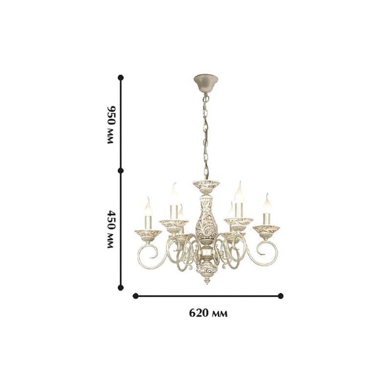 Металлический каркас с белой окраской в античном стиле, регулируемая высота, сменные лампы, цоколь Е14.