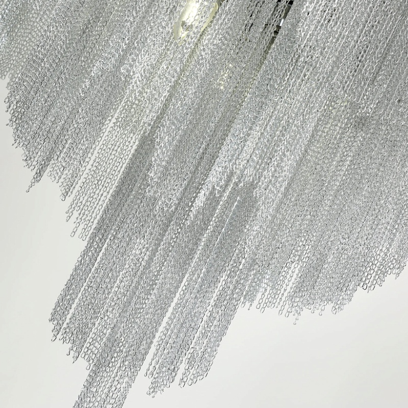 Металлический хромированный каркас, декор из серебристых цепочек, регулируемая высота, сменная лампа, цоколь Е14.