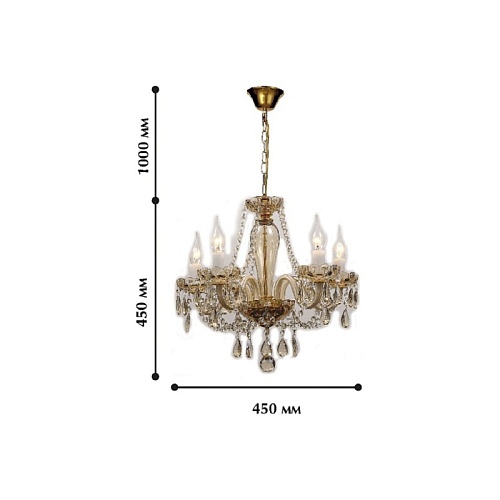 Металлический каркас золотого цвета, хрусталь высшего качества, стеклянные рожки и блюдца цвета "золотое шампанское".