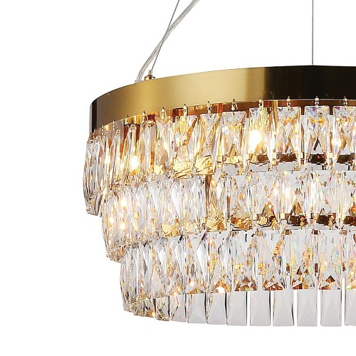 Металлический каркас золотого цвета, хрусталь прямоугольной формы высшего качества.