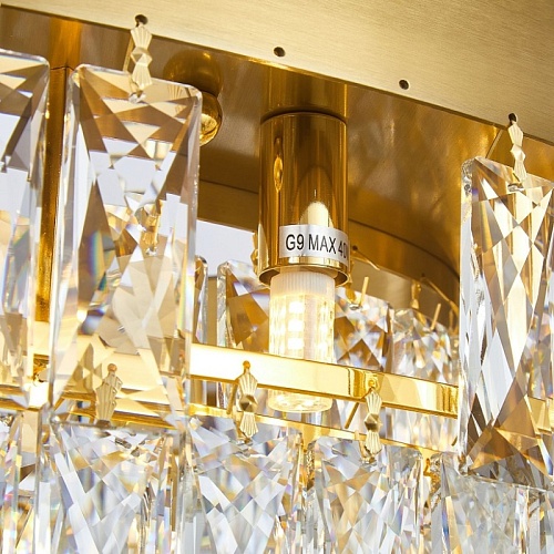 Металлический каркас золотого цвета, хрусталь прямоугольной формы высшего качества.