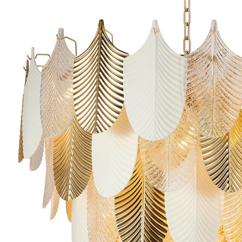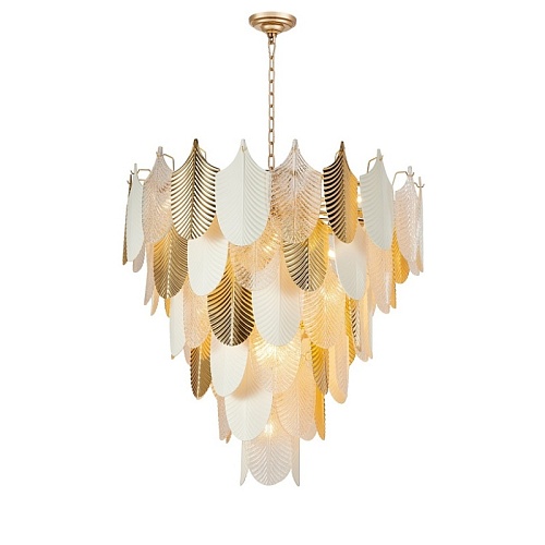 Каркас золотого цвета, декоративные элементы из белого фарфора, полупрозрачного стекла и золотого металла
