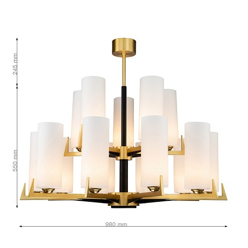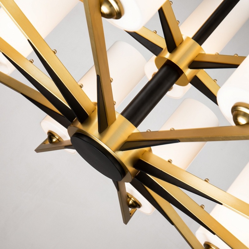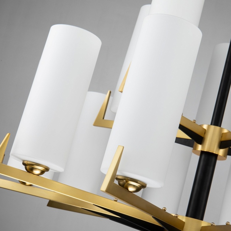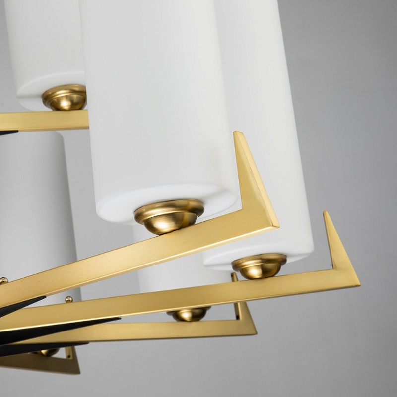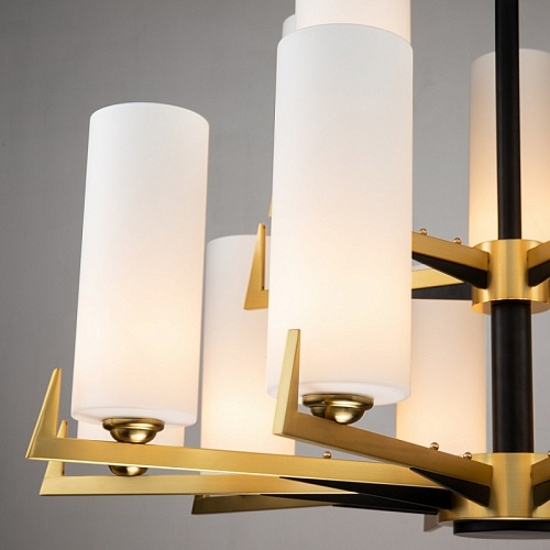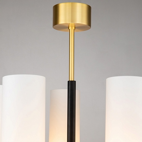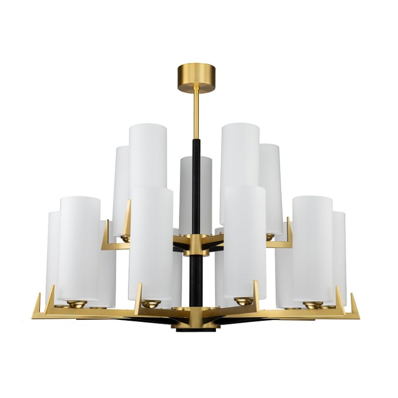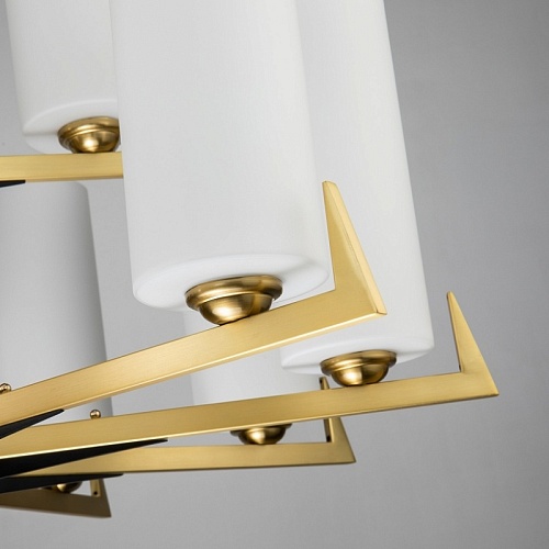 Каркас цвета латунь с элементами черного цвета, плафоны из белого матового стекла