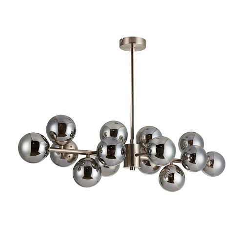 Металлический каркас цвета никель, плафоны из выдувного стекла дымчато-серого цвета.