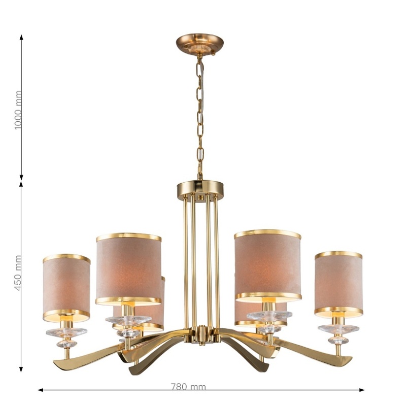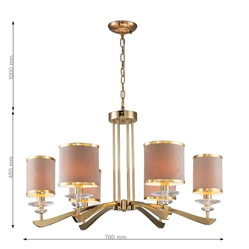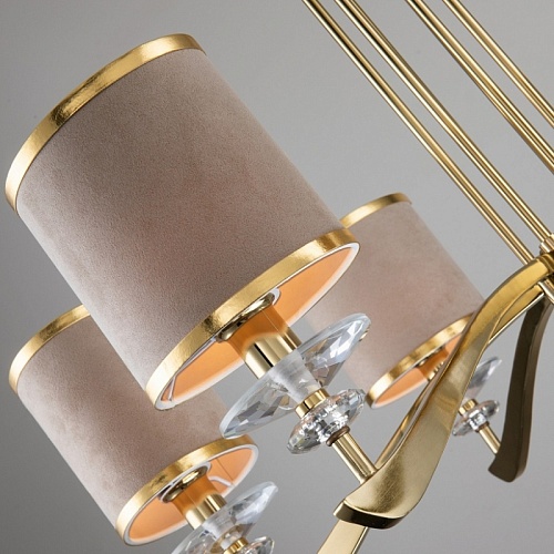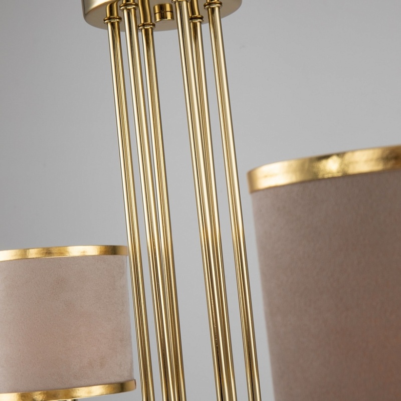 каркас цвета латунь, абажуры из бежевой бархатистой ткани с золотой тесьмой