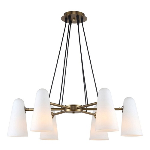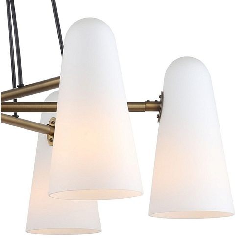 Металлический каркас цвета античная бронза, стеклянные плафоны белого цвета.