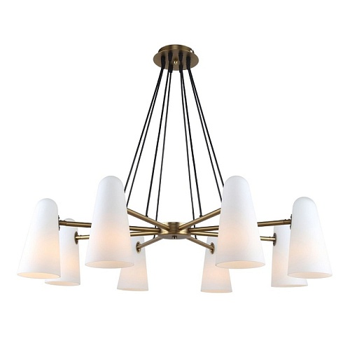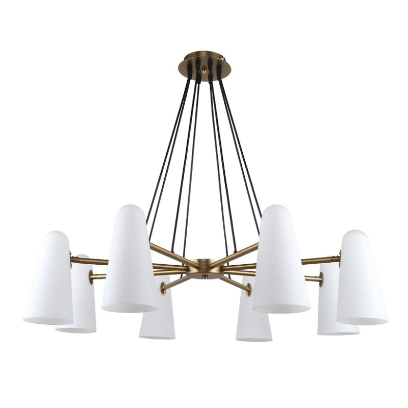 Металлический каркас цвета античная бронза, стеклянные плафоны белого цвета.