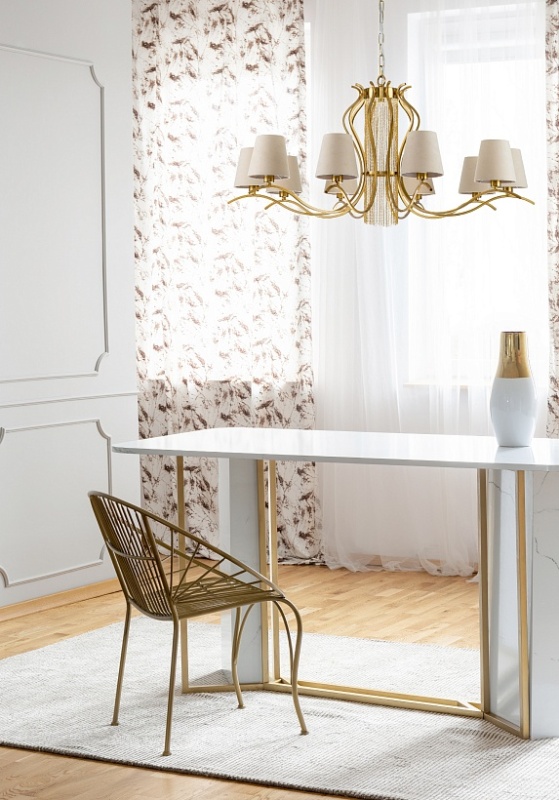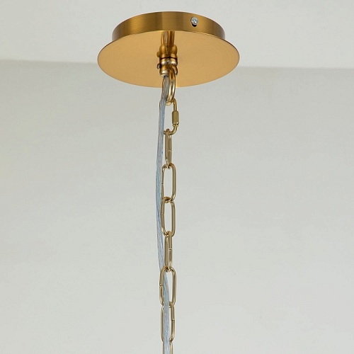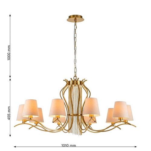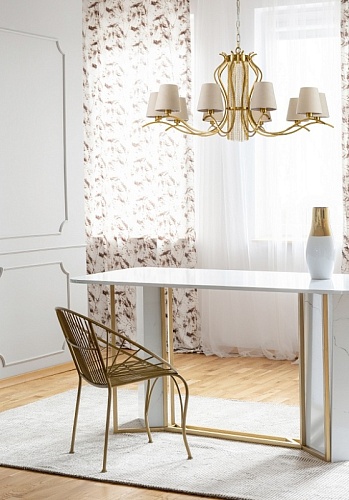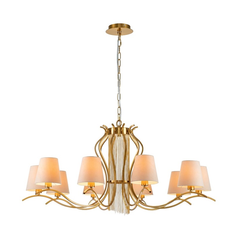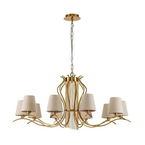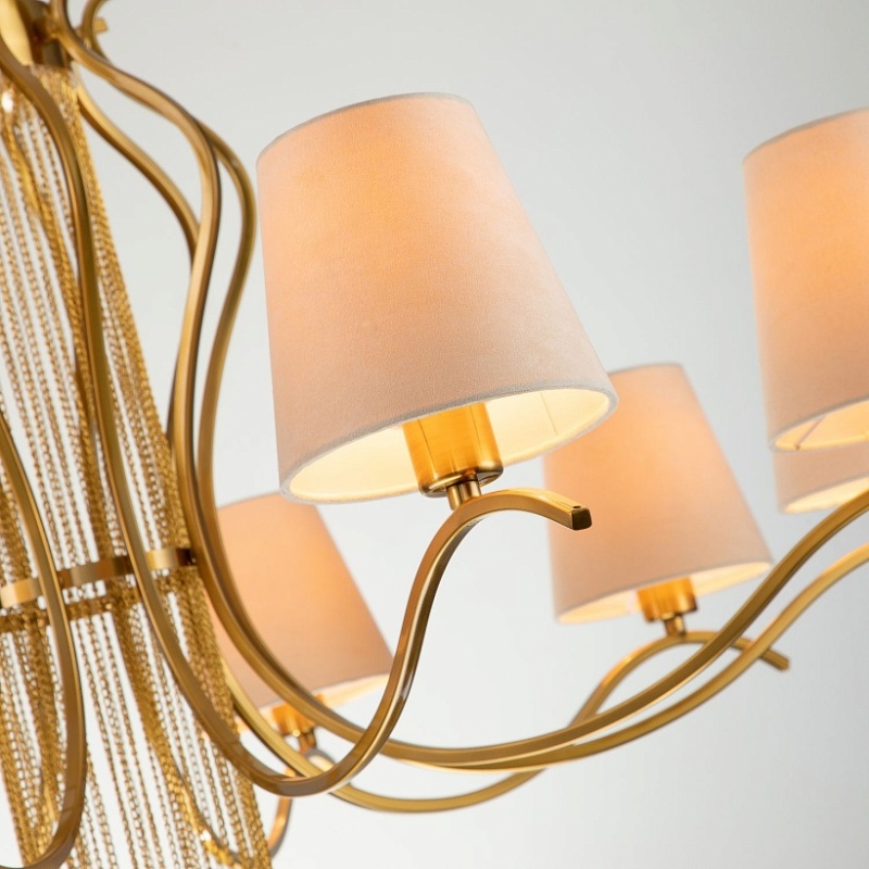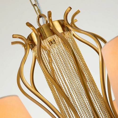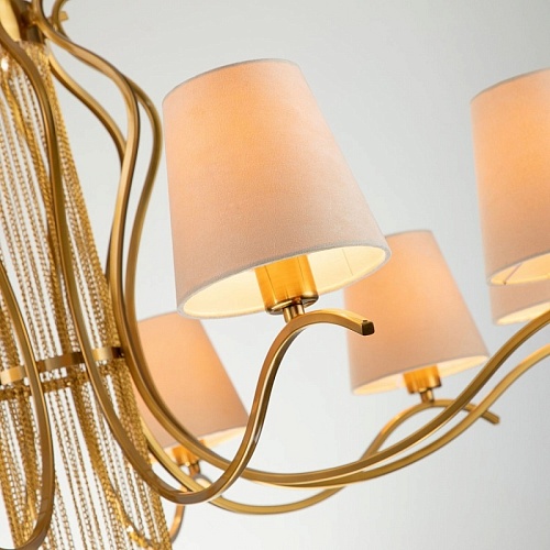 Каркас цвета латунь, плафоны из велюровой ткани кремового цвета, декоративный элемент в виде латунных цепочек