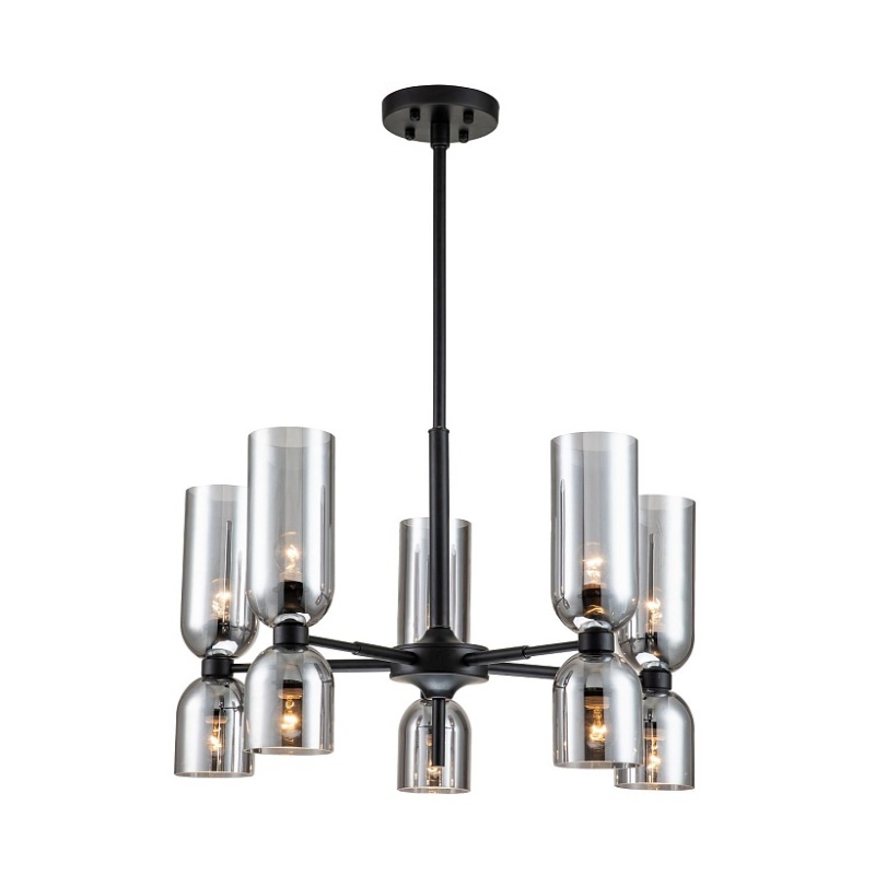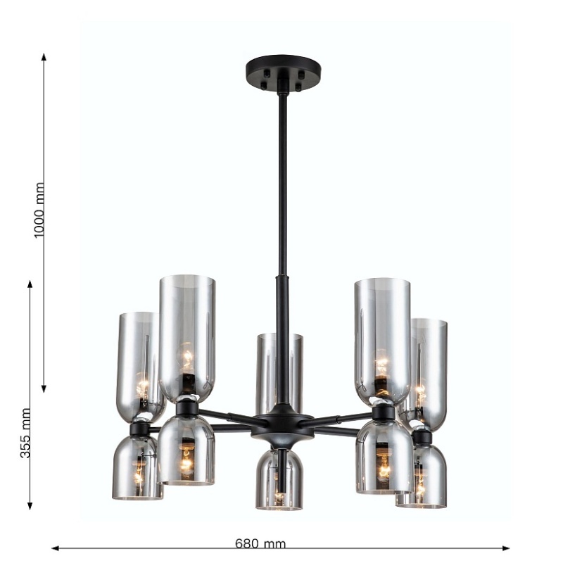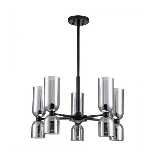 Металлический каркас черного цвета, плафоны из стекла дымчато-серого цвета.