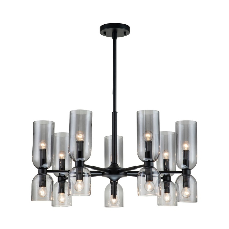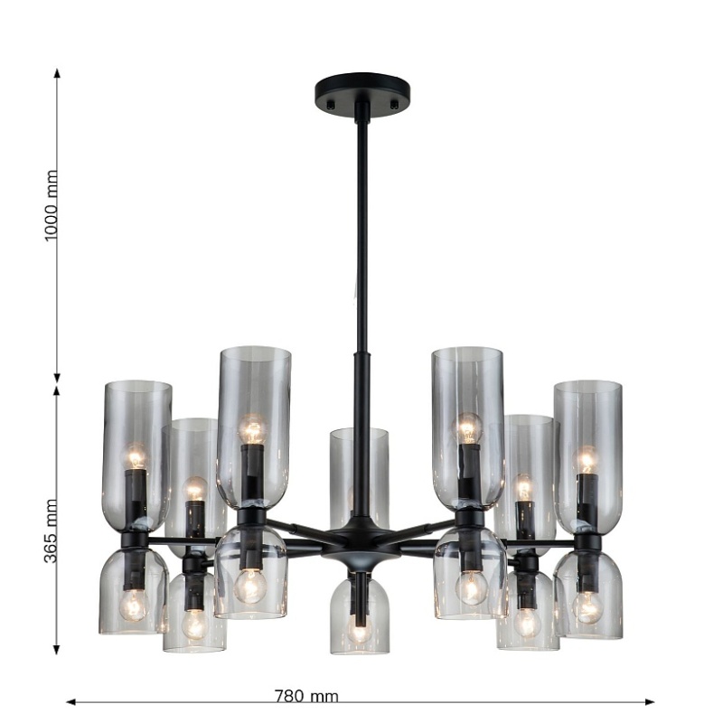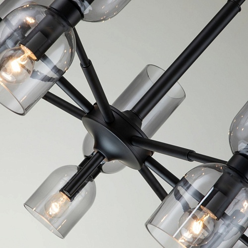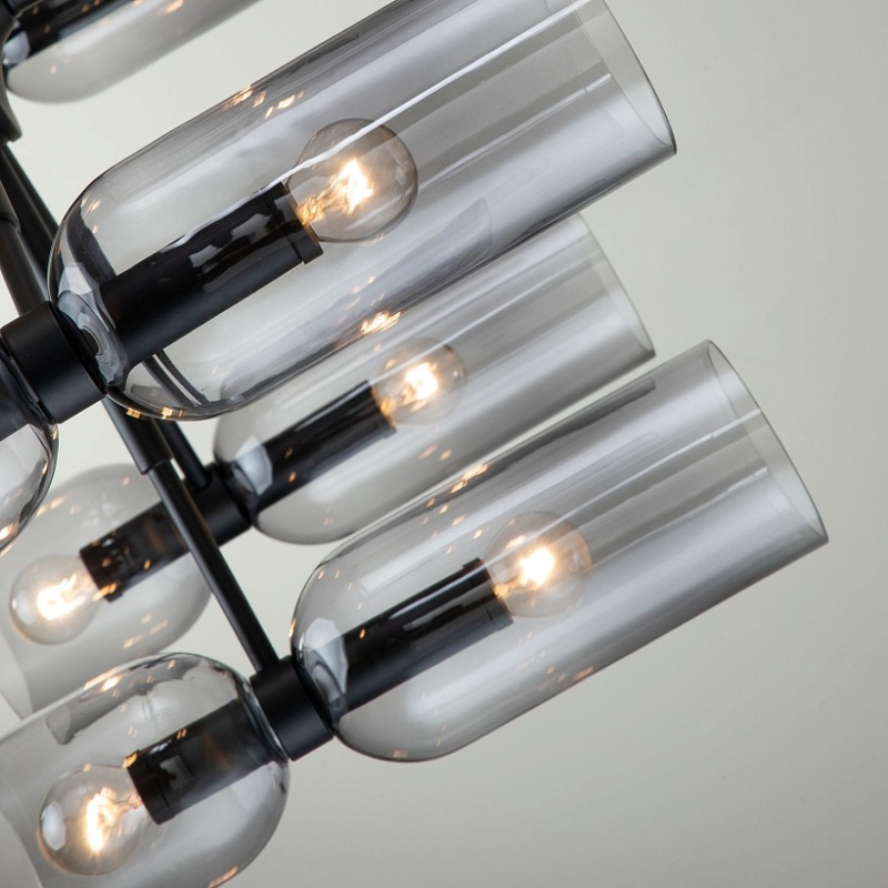 Металлический каркас черного цвета, плафоны из стекла дымчато-серого цвета.
