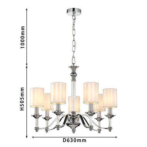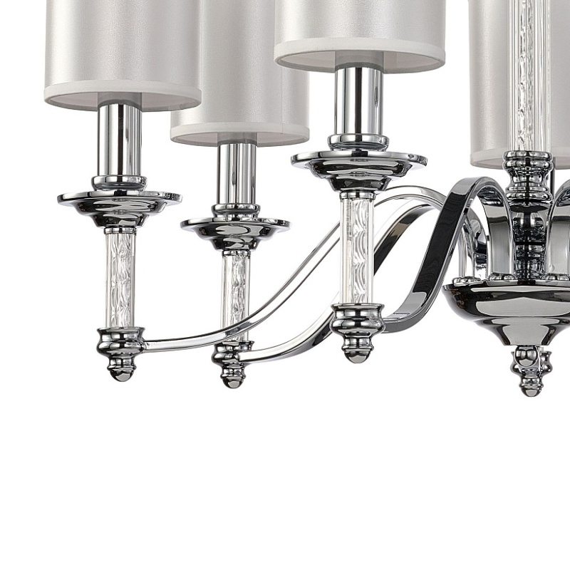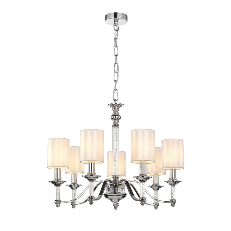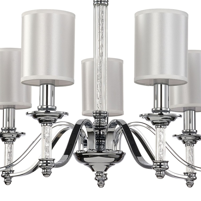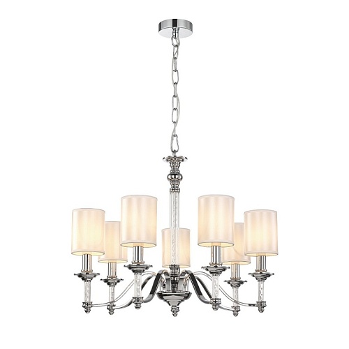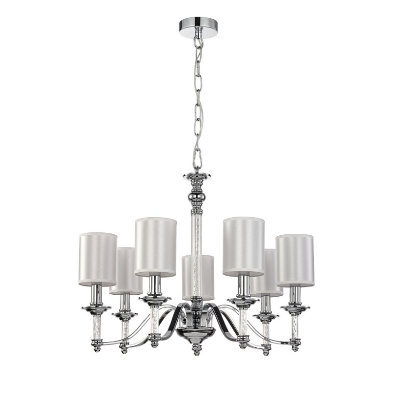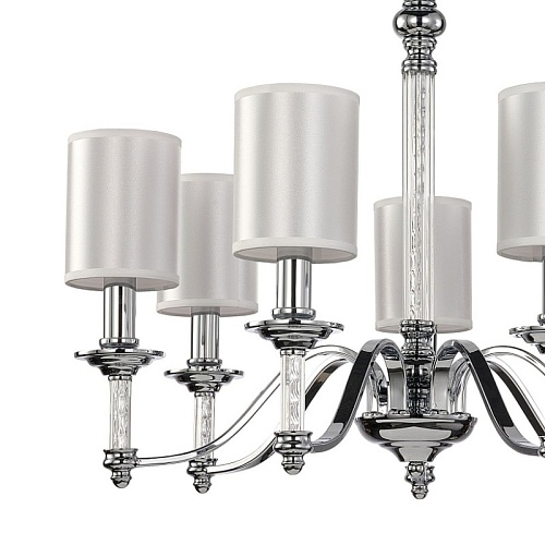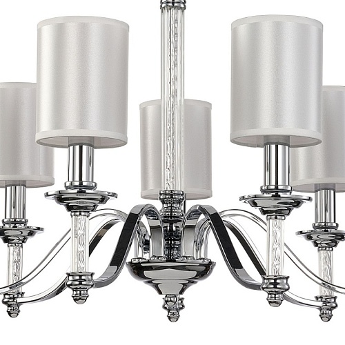 каркас цвета хром, плафоны из белой атласной ткани, декоративные элементы из прозрачного стекла