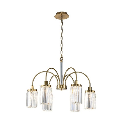 Металлический каркас золотого цвета, плафоны из прозрачных хрустальных элементов.