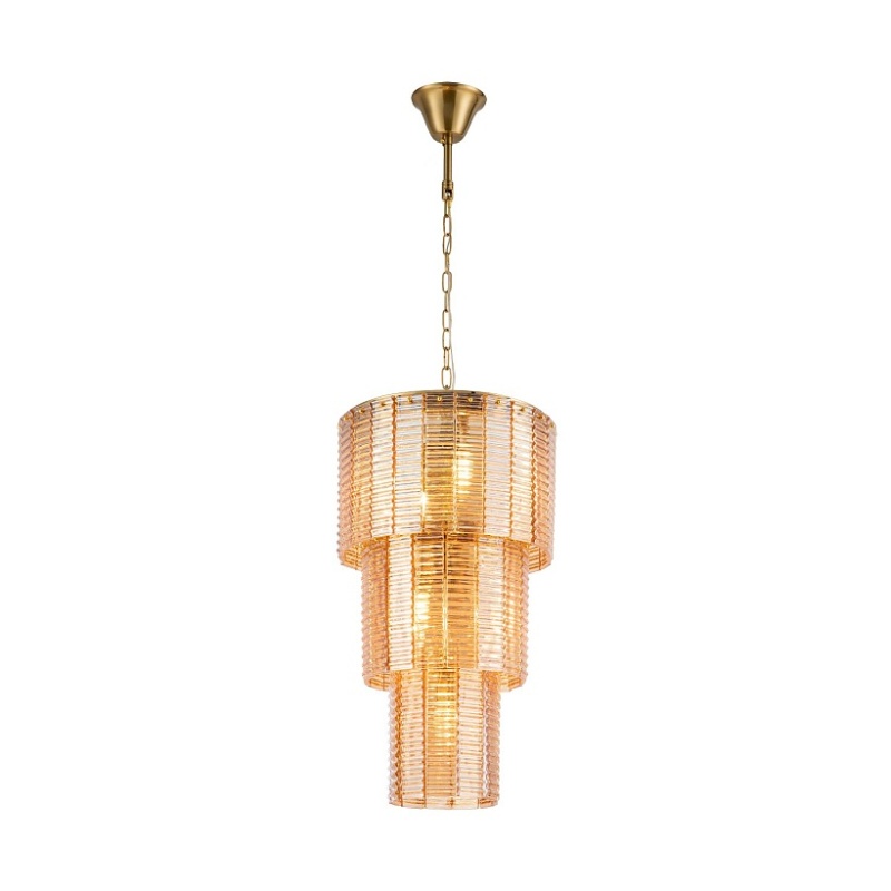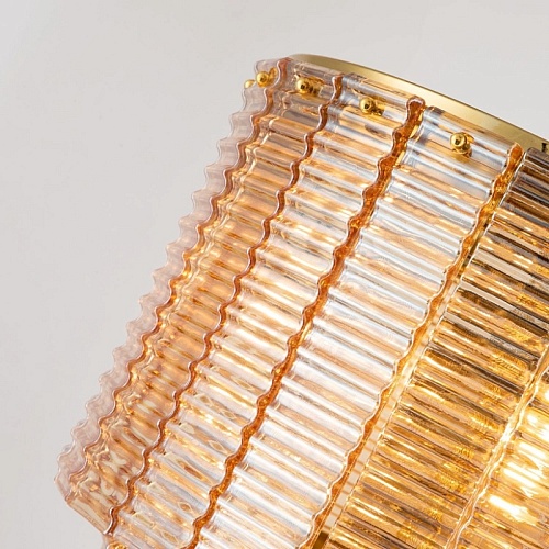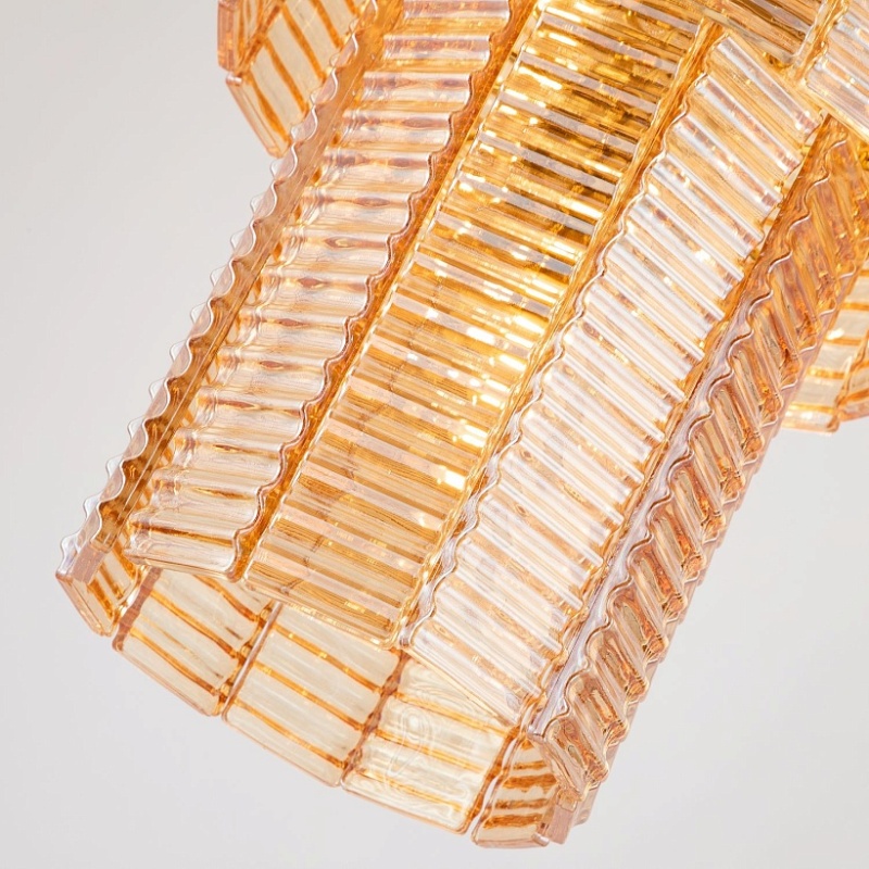 каркас золотого цвета, подвески из рифленого стекла янтарного цвета, изготовленного по Муранской технологии