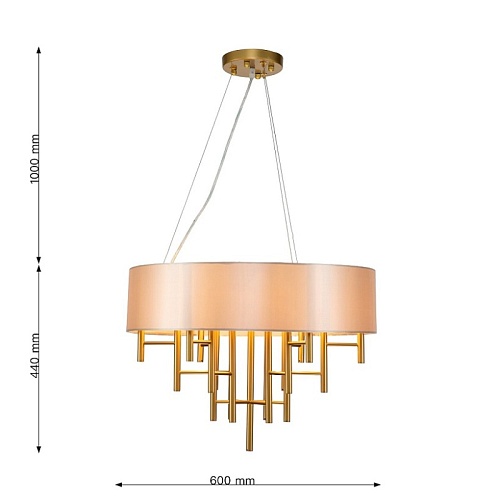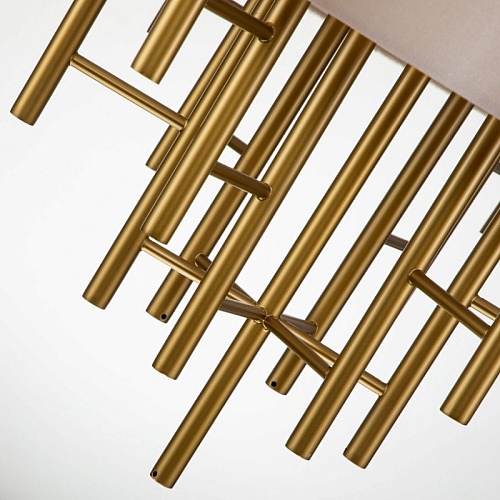 каркас цвета латуни, абажур из глянцевой бежевой ткани