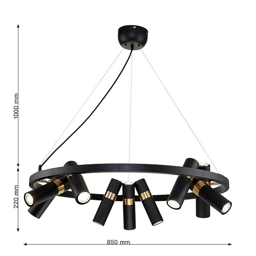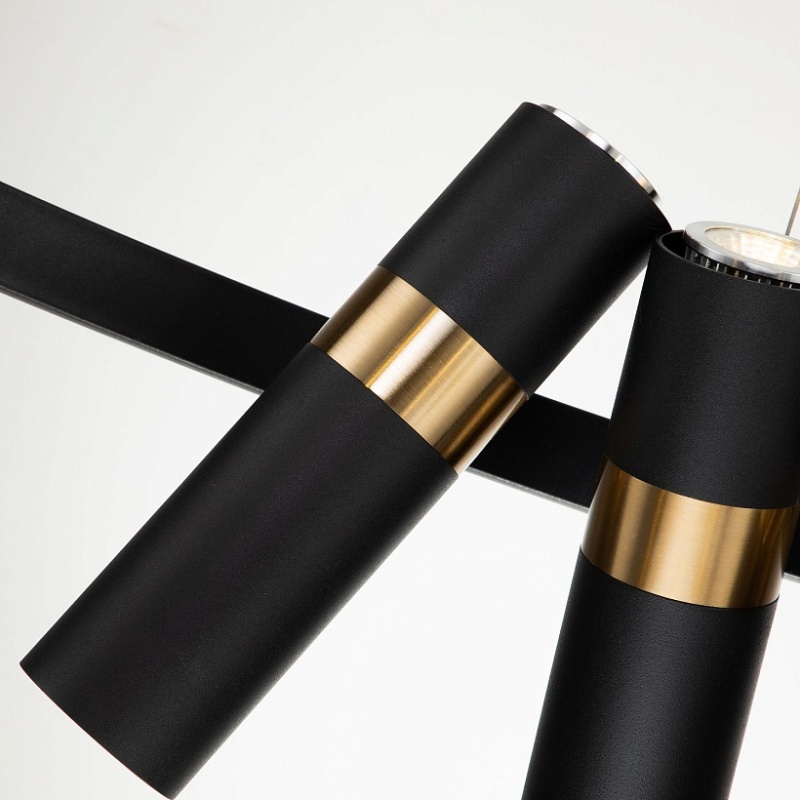 Каркас светильника сочетает два цвета - золотая гальваника и черный, поворотные плафоны, сменная лампа.