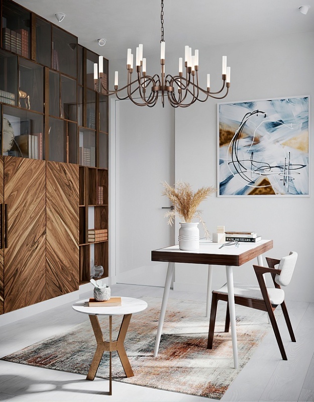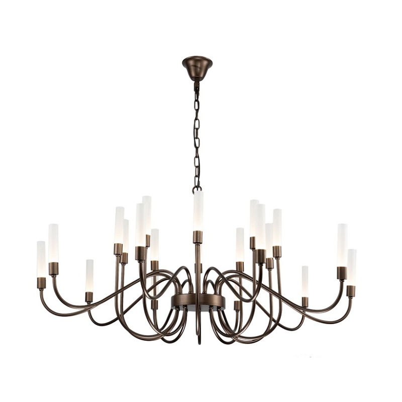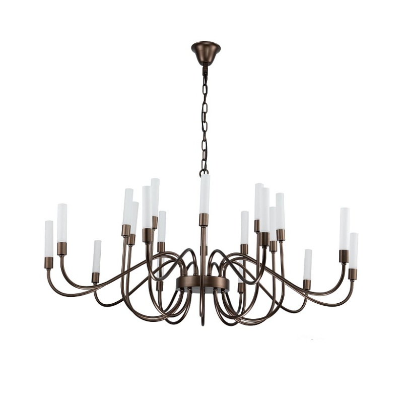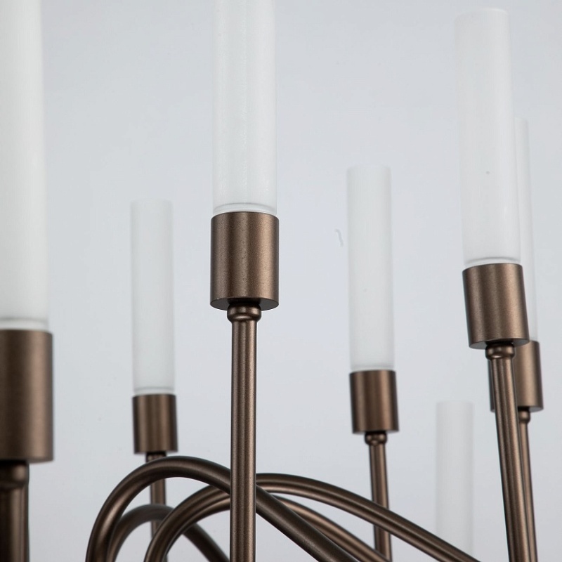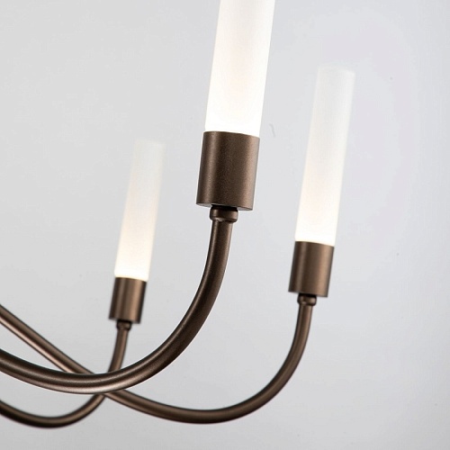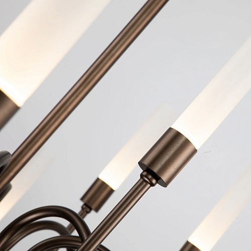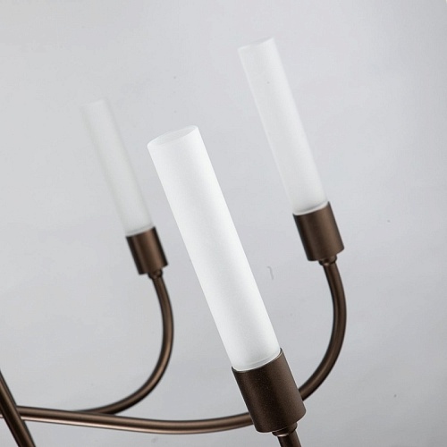 Металлический каркас темно-коричневого цвета, плафоны из полупрозрачного стекла.