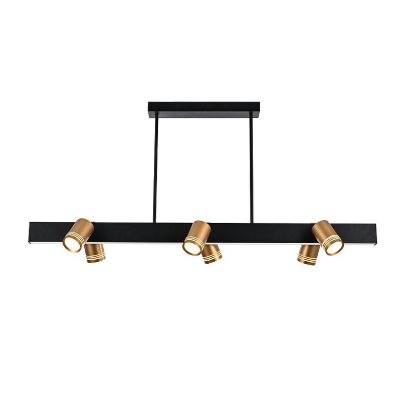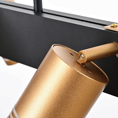 каркас черного цвета, поворотные плафоны золотого цвета с лампами GU10, которые можно менять