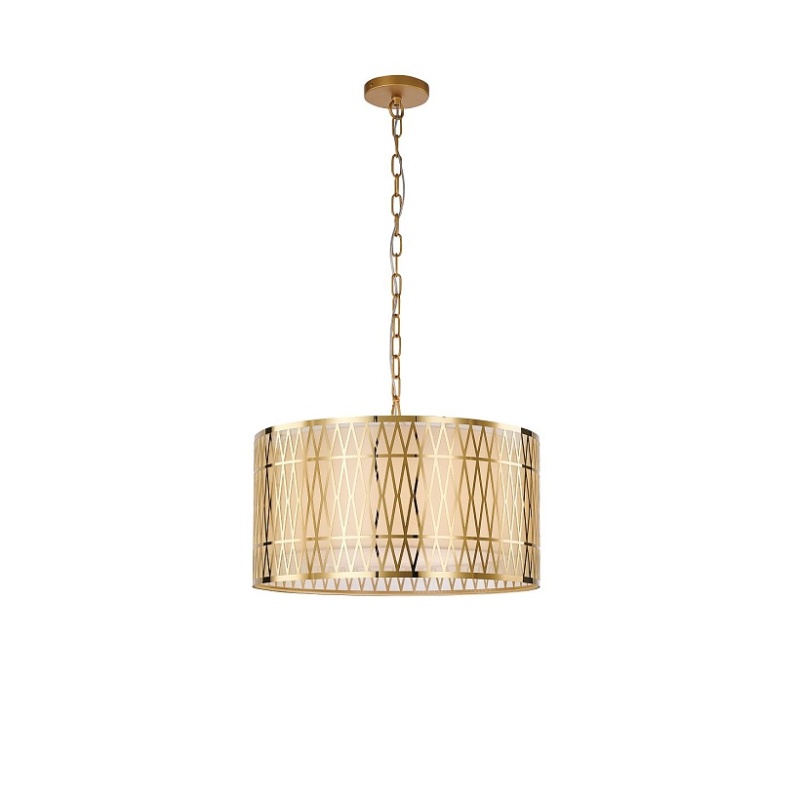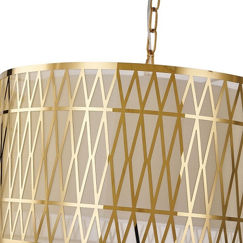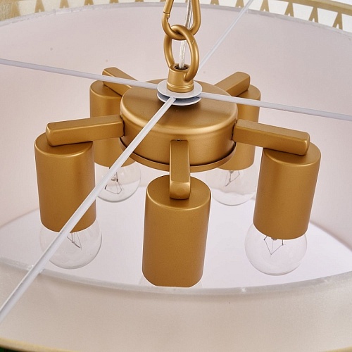 золотой каркас и абажур из бежевой ткани, лампы E27 на 60W можно менять