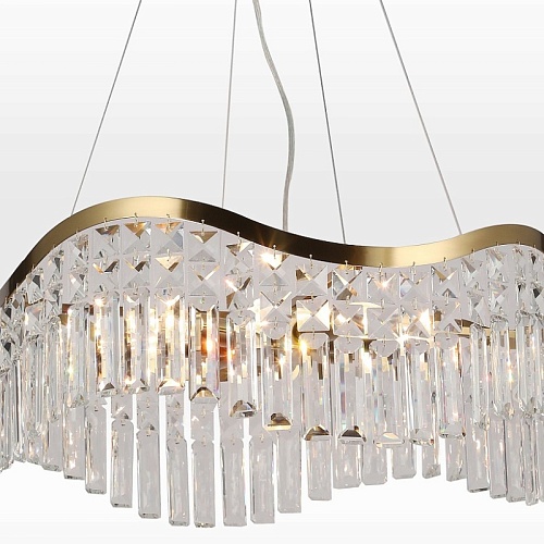 Каркас в цвете гальваническое золото, декорирована прозрачным хрусталем, сменная лампа.