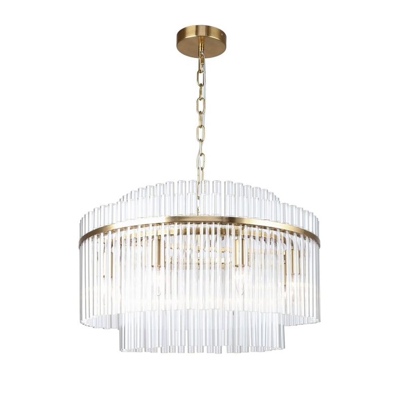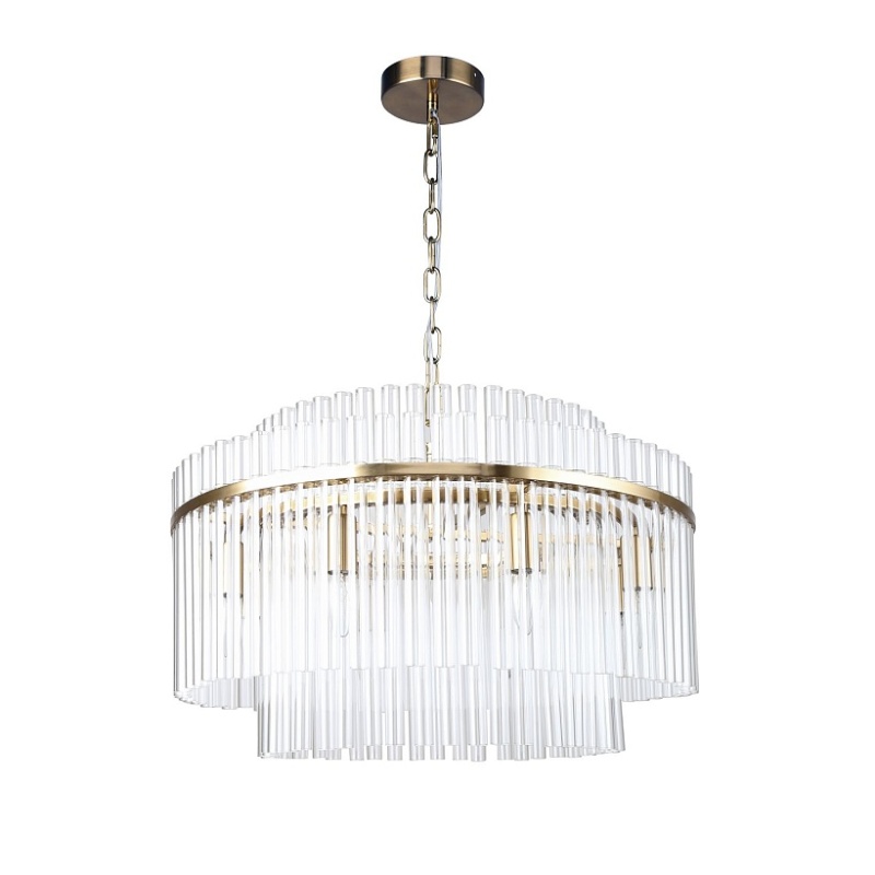 Металлический каркас в цвете латунь, многослойный декор из выдувных стеклянных трубочек, регулируемая высота.