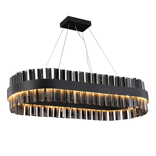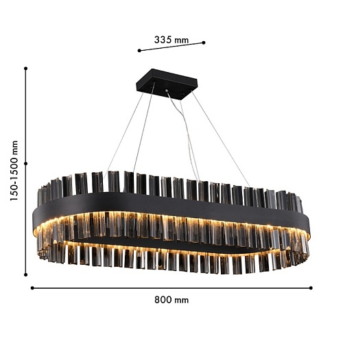 Металлический каркас черного цвета, дымчато-серый хрусталь, регулируемая высота, встроенная лента LED.