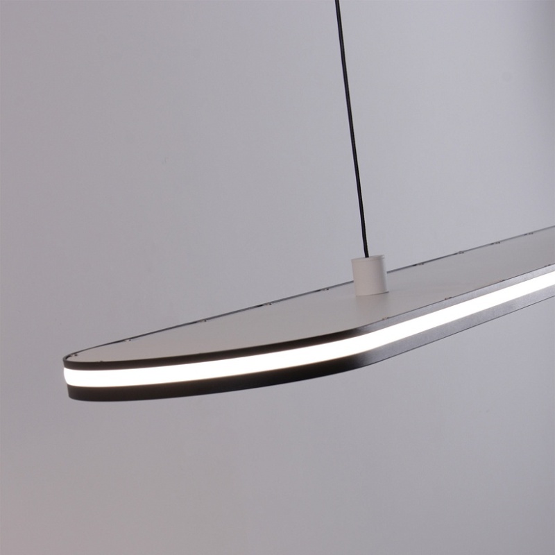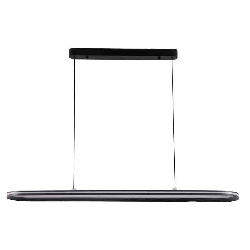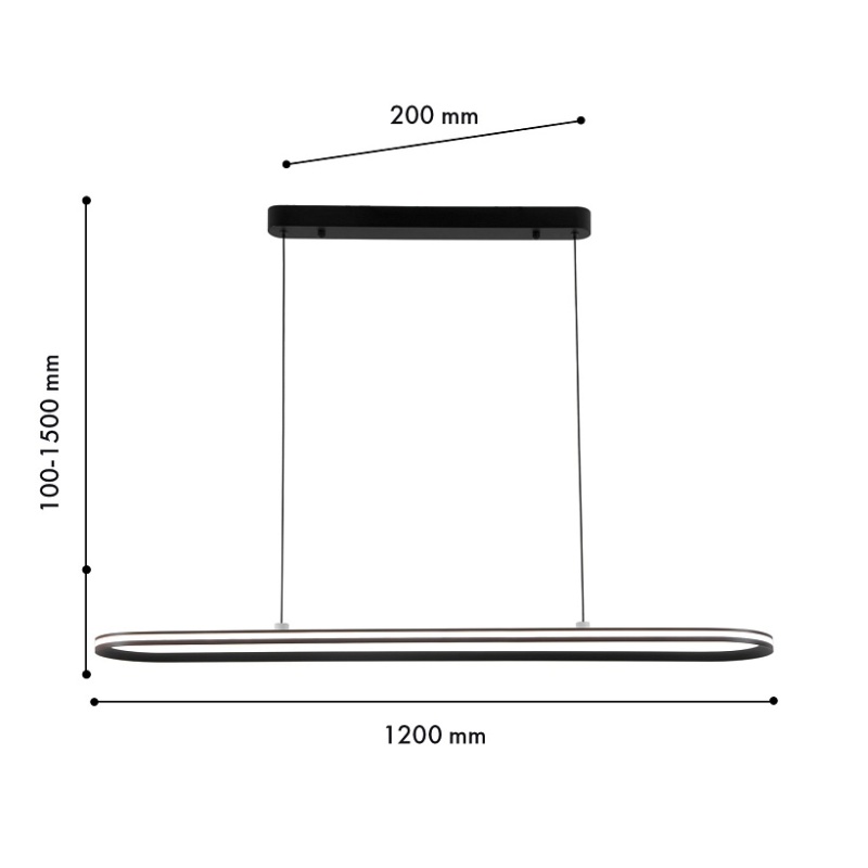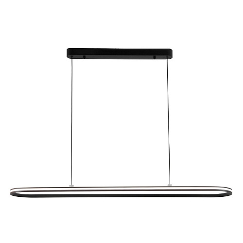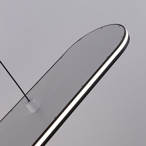 Металлический каркас овальной формы в черном матовом цвете, лента LED по нижней и боковой поверхности плафона, регулируемая высота.
