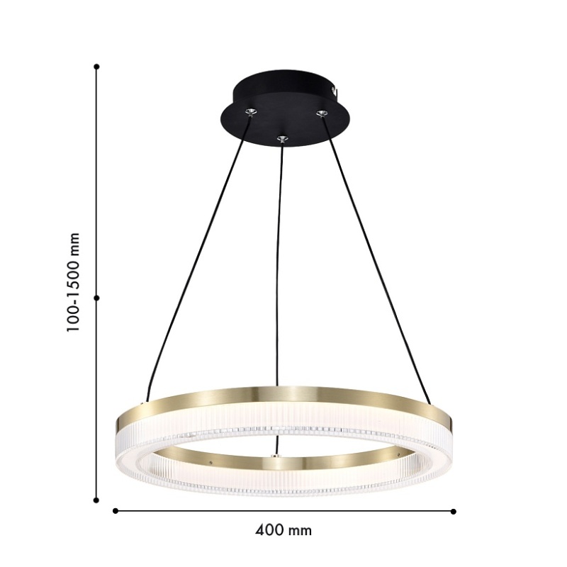 Металлический каркас в цвете гальваническое золото, декоративный акриловый плафон со сложным многослойным оптическим узором, регулируемая высота.