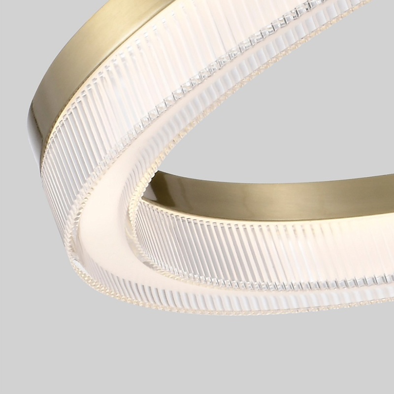 Металлический каркас в цвете гальваническое золото, декоративный акриловый плафон со сложным многослойным оптическим узором, регулируемая высота.