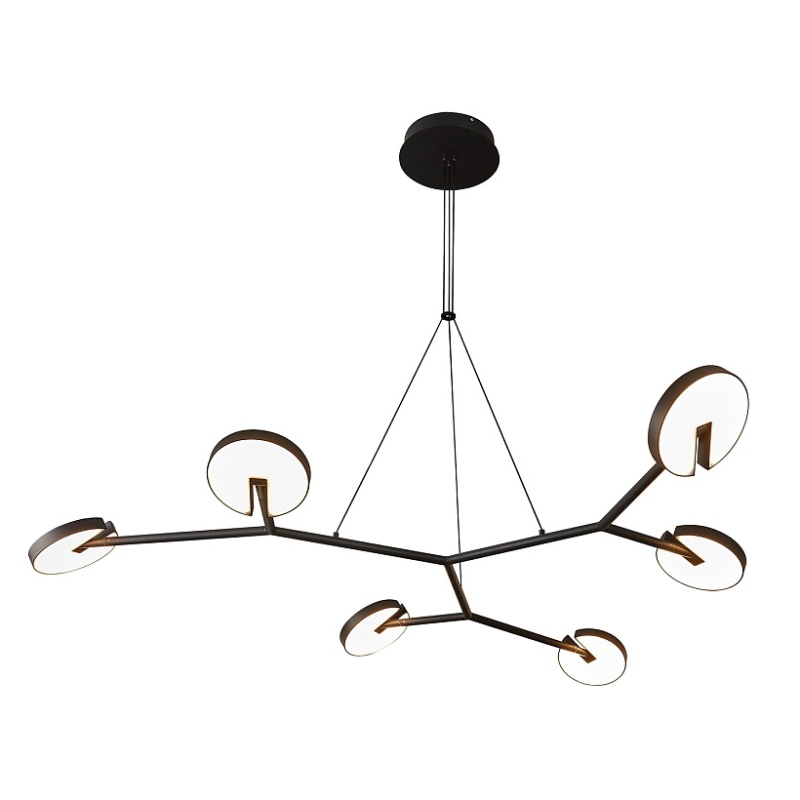 Металлический каркас черного матового цвета, плафоны из белого акрила с металлической окантовкой, специальная декоративная щель в плафонах и встроенный поворотный механизм позволяют поворачивать их под углом 90°.