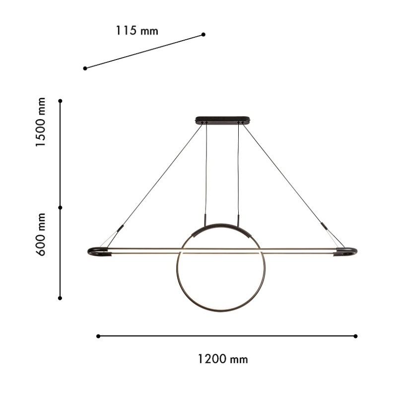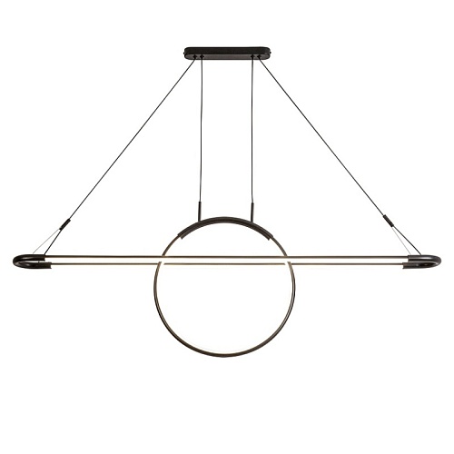 Подвесная люстра, металлический каркас черного матового цвета, рассеиватель из акрила, возможность менять высоту внешнего плафона с помощью подъема и опускания центрального элемента - кольца, модуль LED.