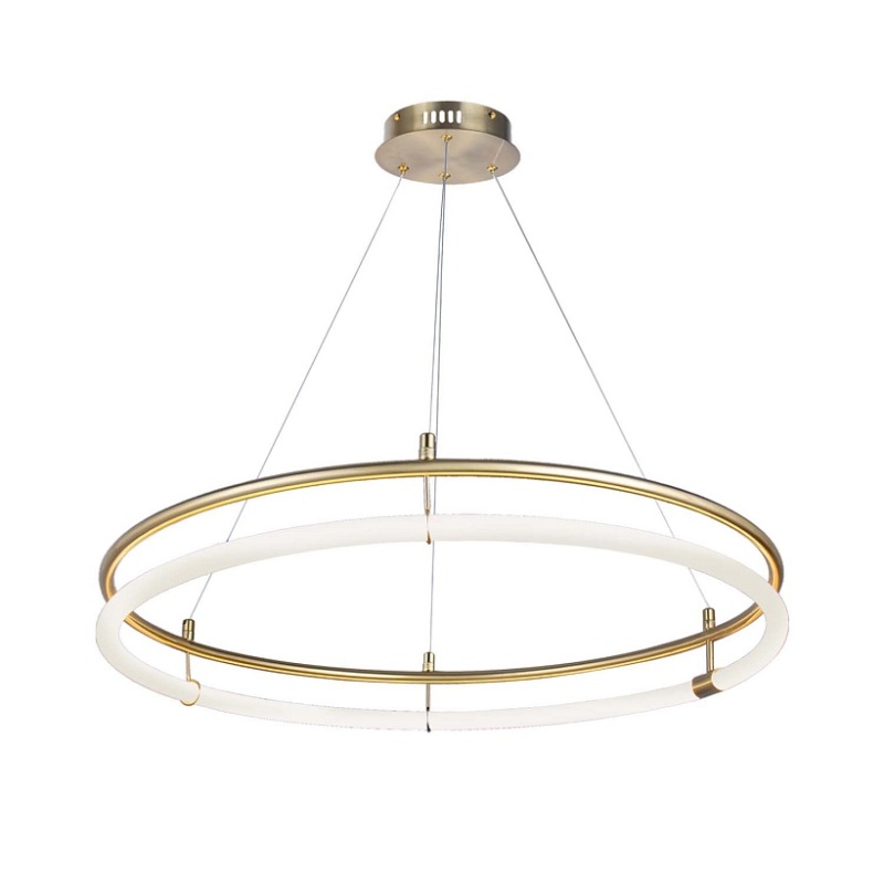 Каркас из метала золотого цвета в форме обода, рассеиватель в виде силиконовой трубки в форме обода, параллельного Каркасу, с LED-элементом внутри, регулируемая высота, возможность использования универсальных креплений.