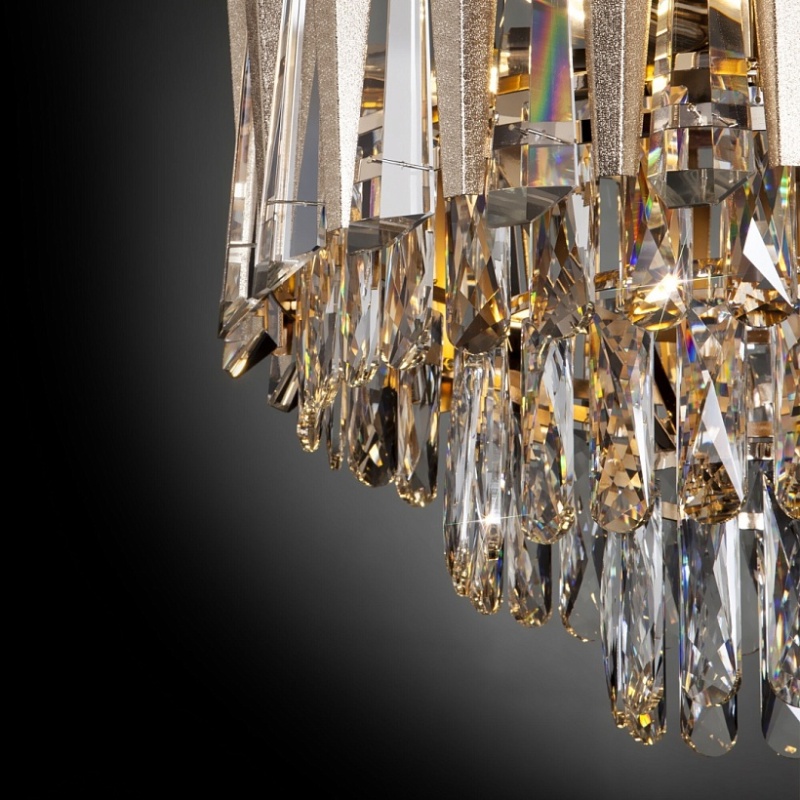Для декора светильников Bogate’s мы используем высококачественный хрусталь Strotskis собственной торговой марки. Хрусталь производится по лучшему рецепту – с добавлением в состав 24% оксида свинца, что гарантирует прозрачность, безупречное сияние и глубинное свечение кристаллов. Strotskis – это филигранность исполнения, идеальная полировка, радужный блеск и роскошный дизайн.