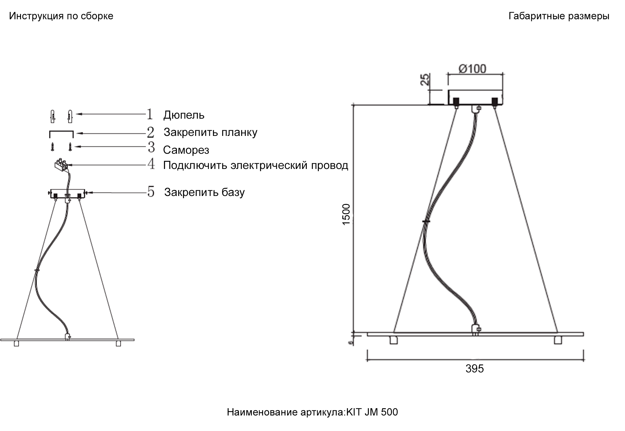 Характеристики Подвесной комплект Crystal Lux KIT JM 500