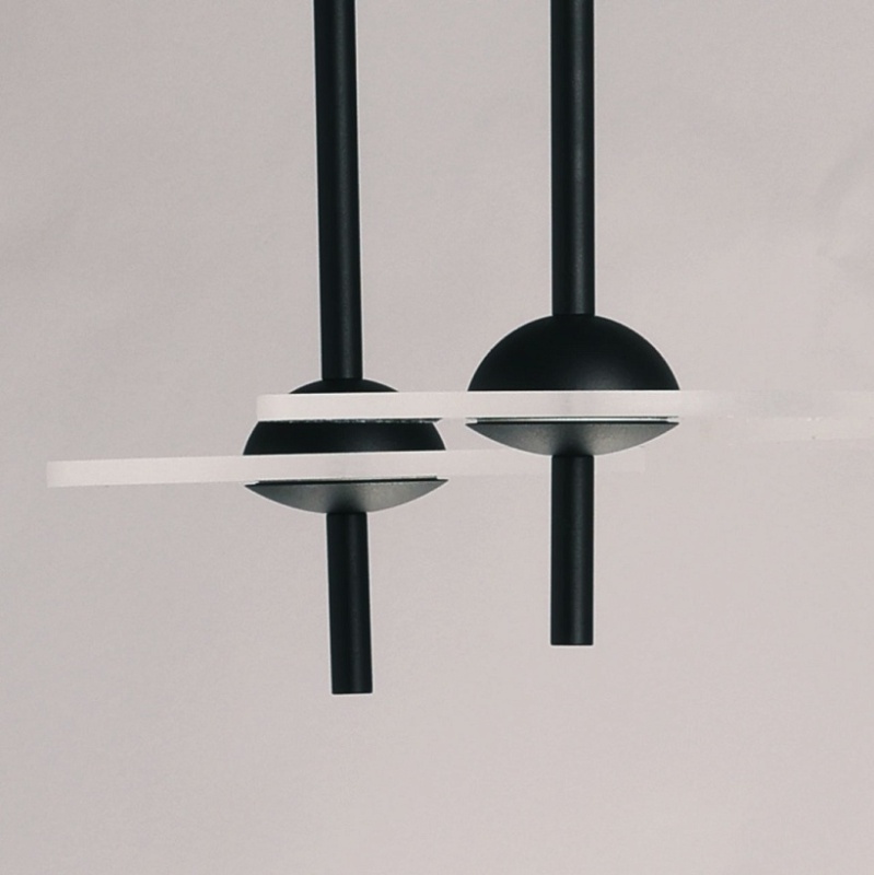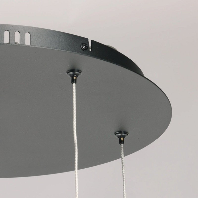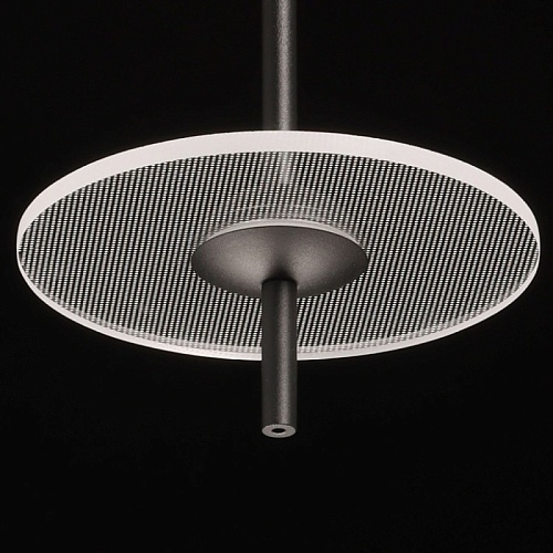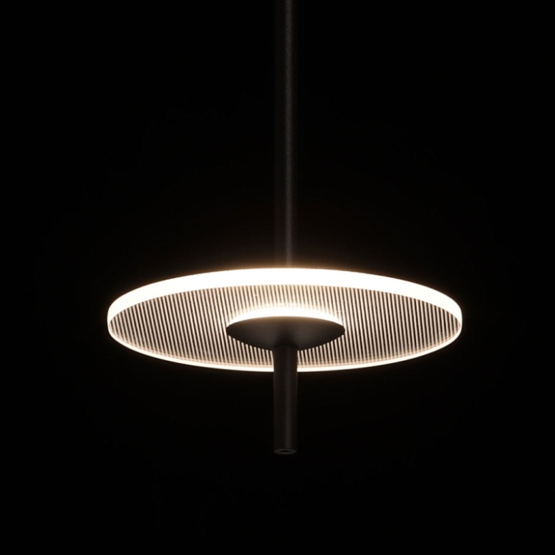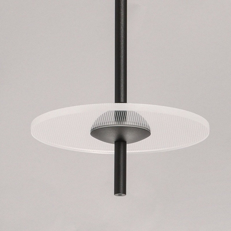 Металлическое основание подвеса обработано по технологии порошкового окрашивания в черный цвет. Плафоны в виде диска выполнены из прозрачного акрила.