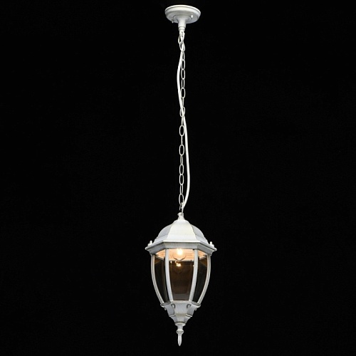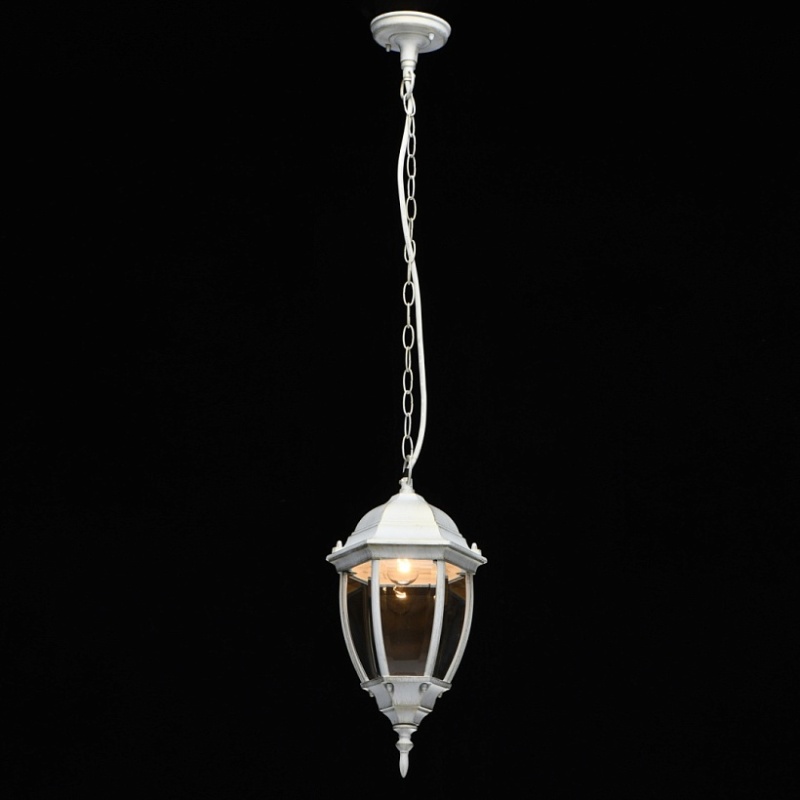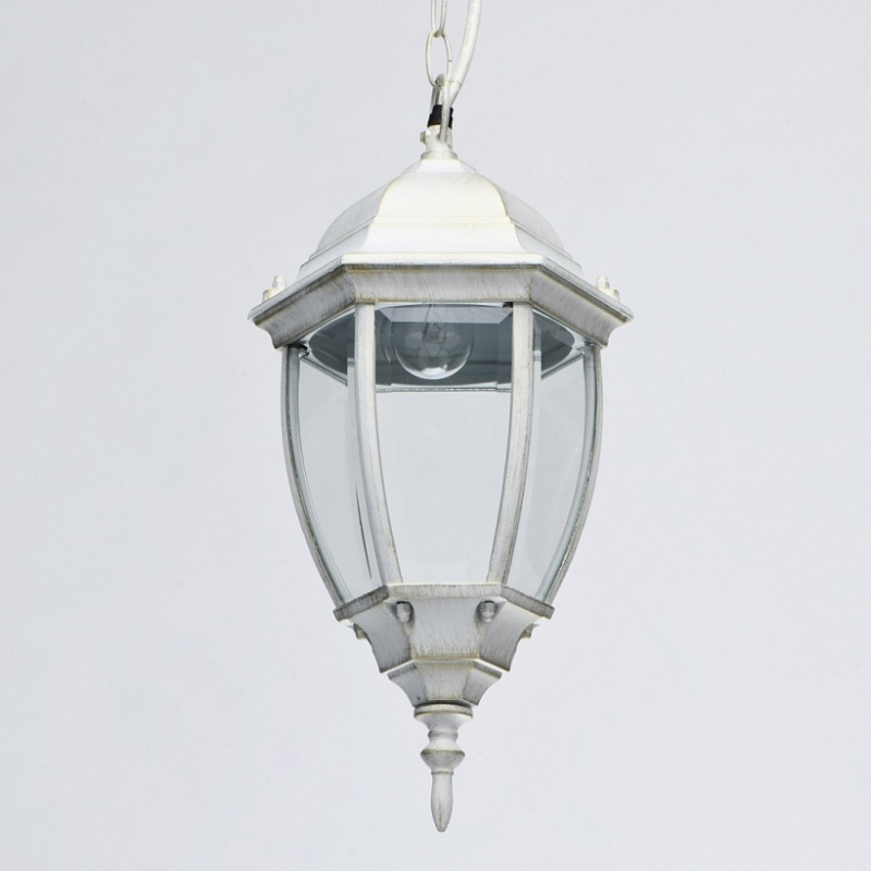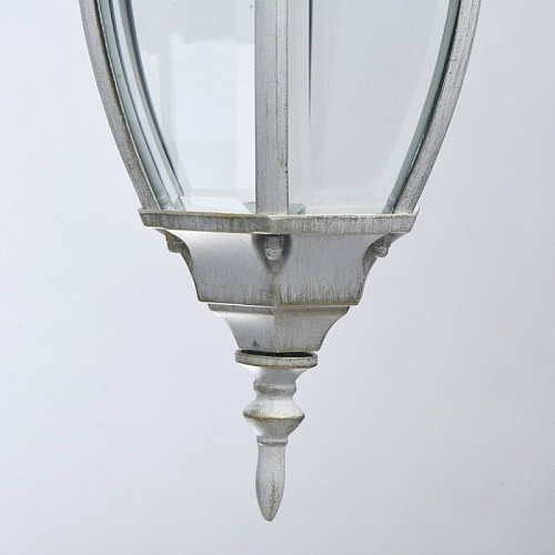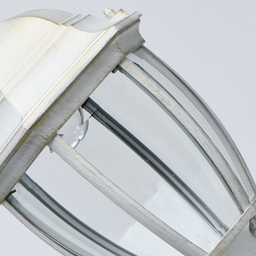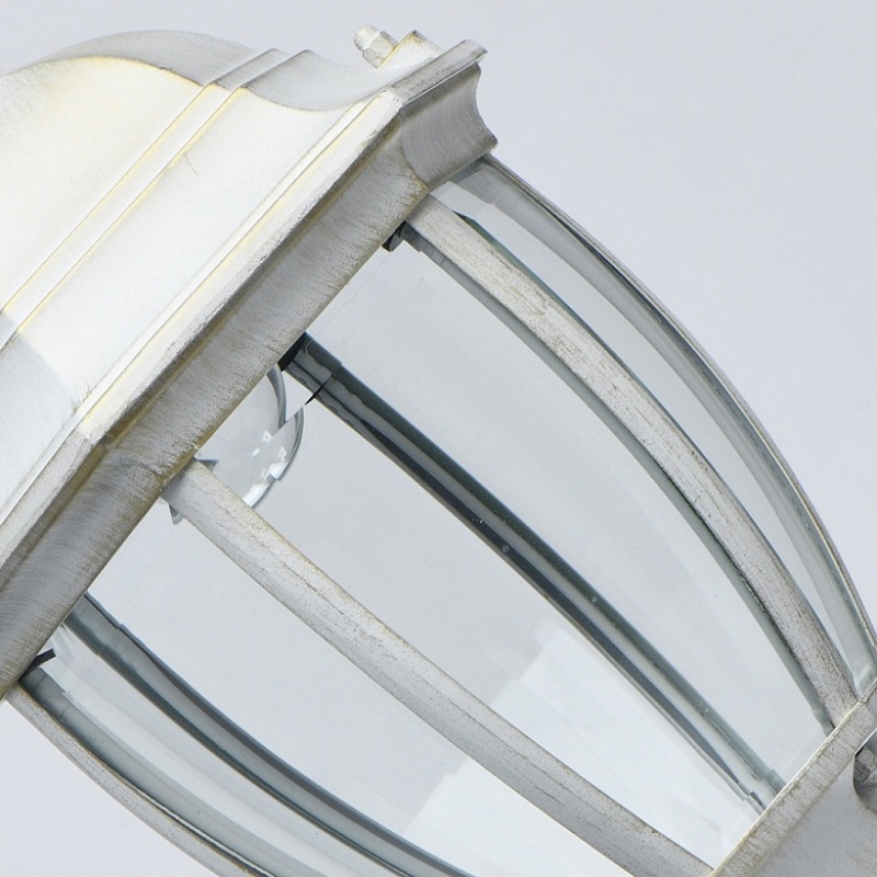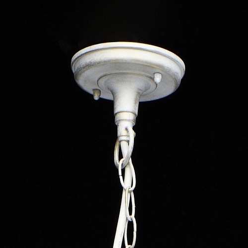 Основание светильника выполнено из сплава алюминия с цинком по технологии художественного литья и обработано по технологии порошкового окрашивания в белый цвет с золотой патиной. Источник света закрыт прозрачным фацетированным стеклом.