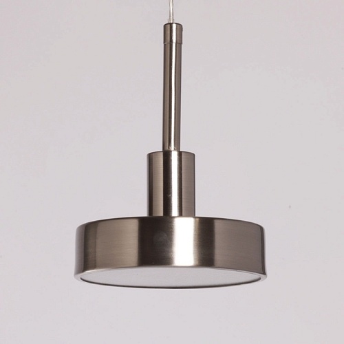 Металлическое основание подвеса гальванизировано в цвет никеля. Корпус плафона выполнен из сплава алюминия и гальванизирован в цвет основания. Светодиодный источник света закрыт матовым акрилом.