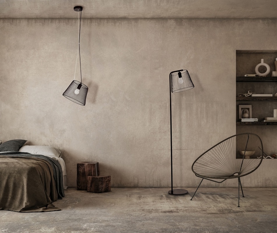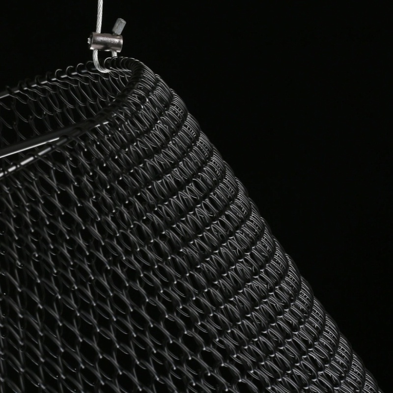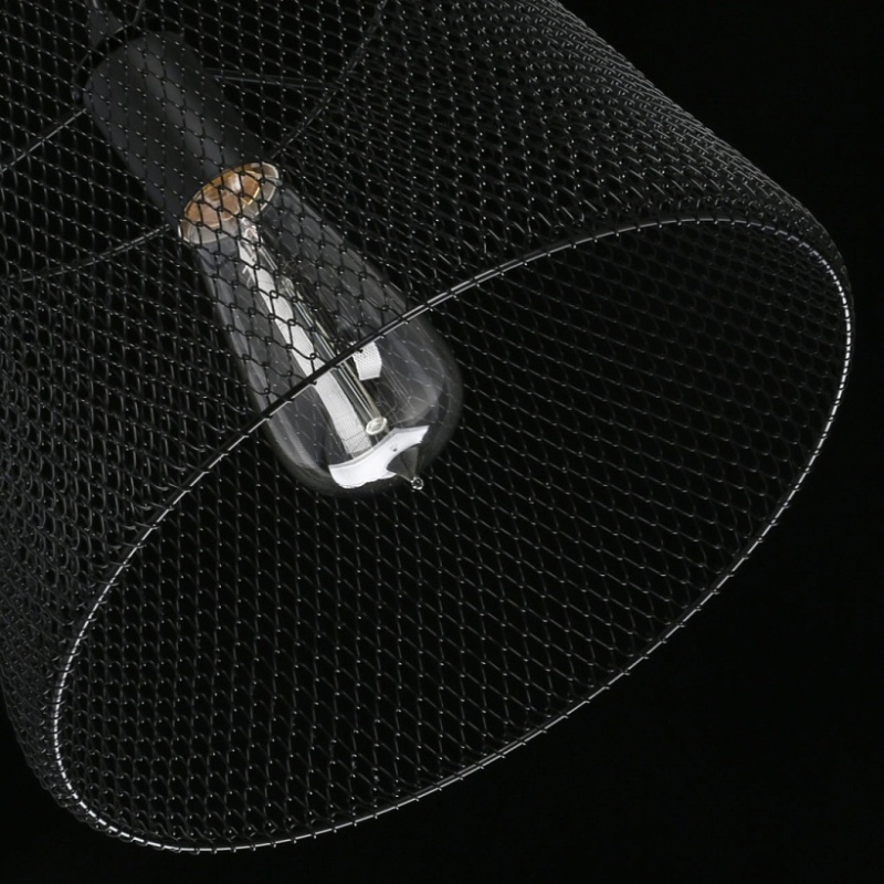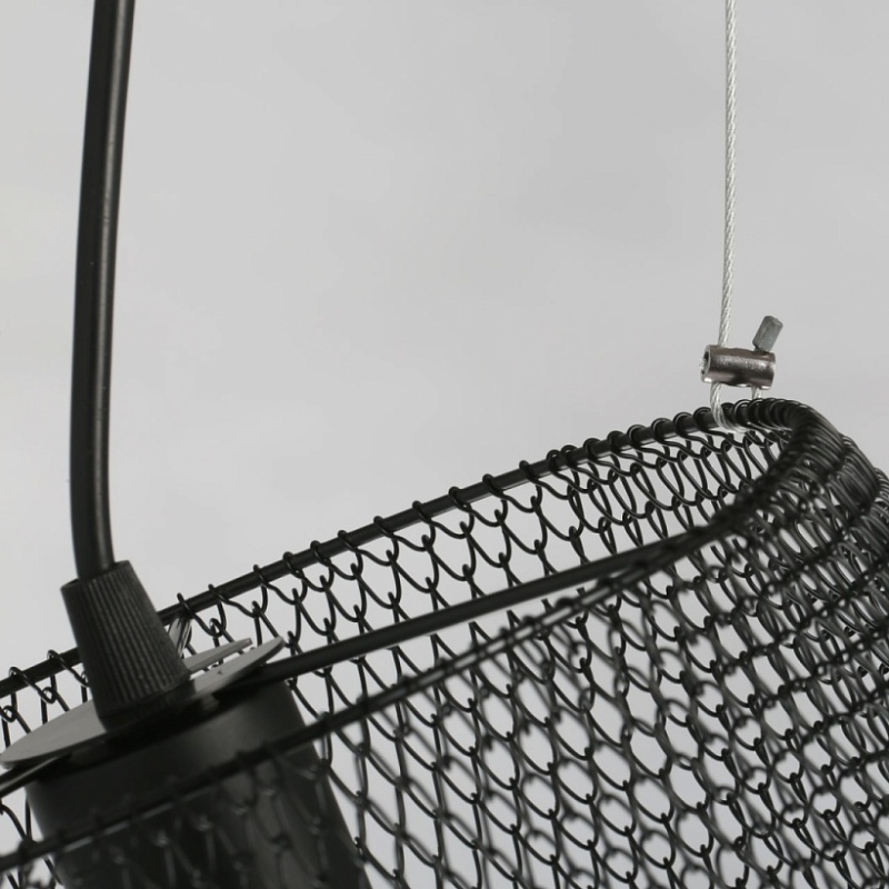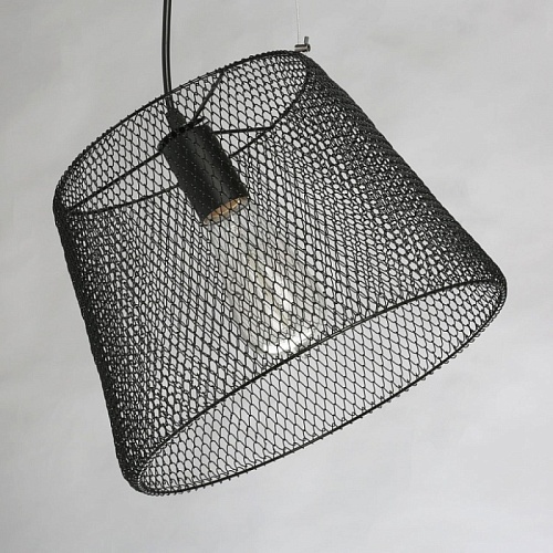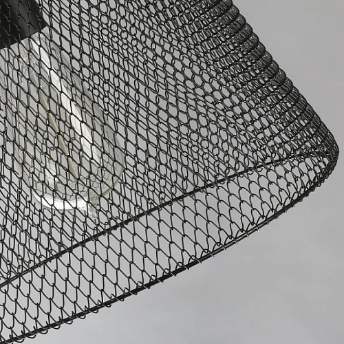 Металлическое основание одиночного подвеса и плафон в виде сетки окрашены по технологии электрофореза в черный матовый цвет.