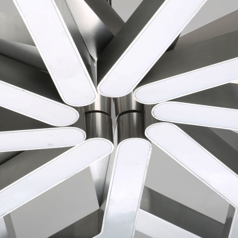 Металлическое основание светильника гальванизировано в цвет хрома и матировано. Светодиодный источник света закрыт белым матовым акрилом.