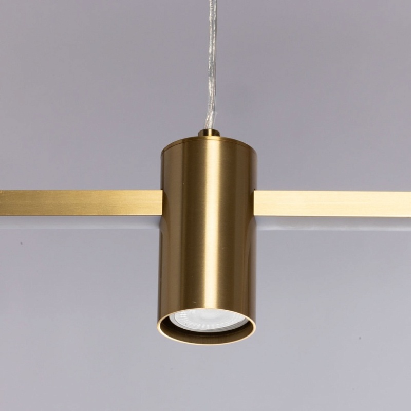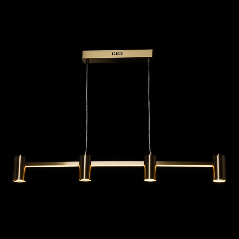 Металлическое основание люстры гальванизировано в цвет латуни. Корпус плафонов выполнен из сплава алюминия с цинком и гальванизирован в цвет основания. Светодиодный источник света закрыт белым матовым акрилом.