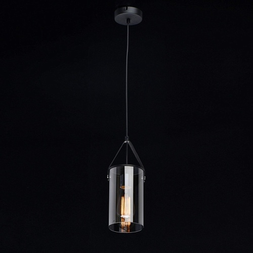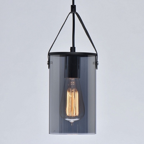 Основание светильника выполнено из металла и окрашено в черный цвет. Стеклянный плафон гальванизирован в цвет антрацита. Плафон крепится к основанию на кожаном ремешке черного цвета.