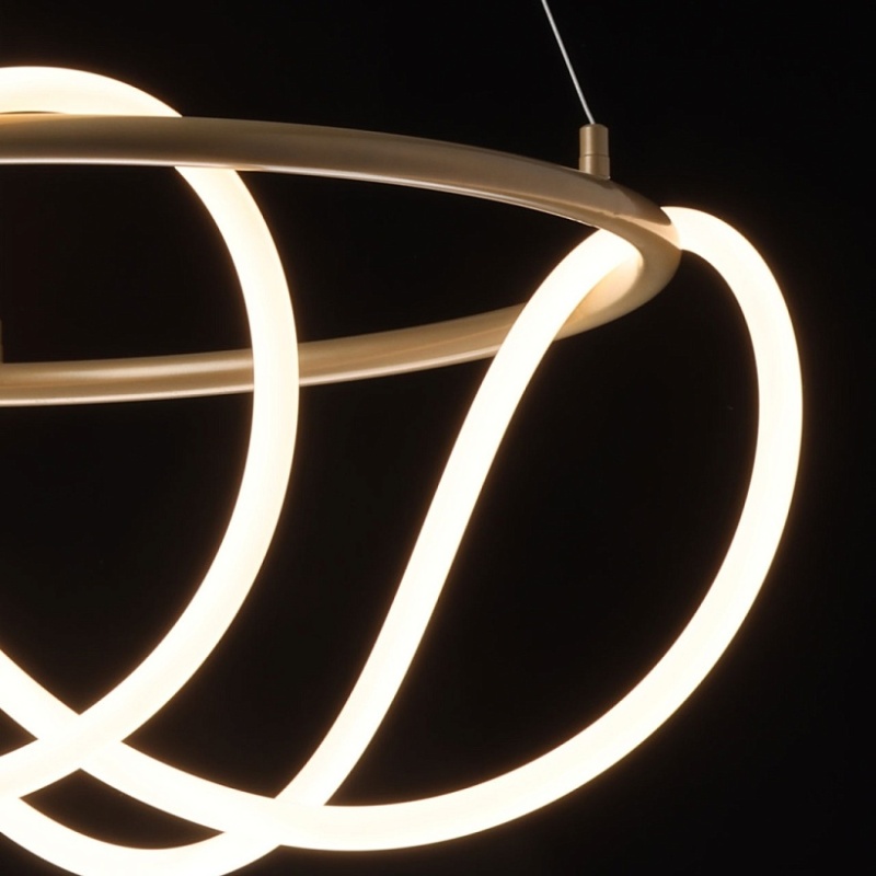 Металлическое основание светильника окрашено в цвет перламутрового золота, матировано. Гибкий плафон выполнен из белого матового силикона.